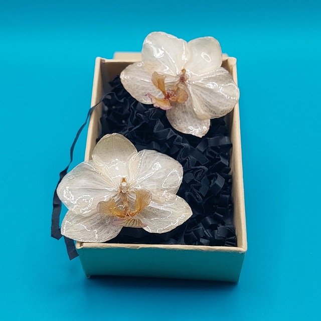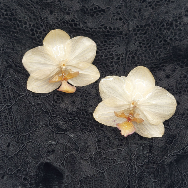 Portez l’élégance naturelle d’une véritable orchidée avec ces boucles légères et raffinées, façonnées à la main en résine brillante.