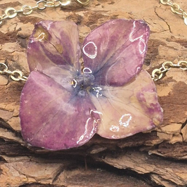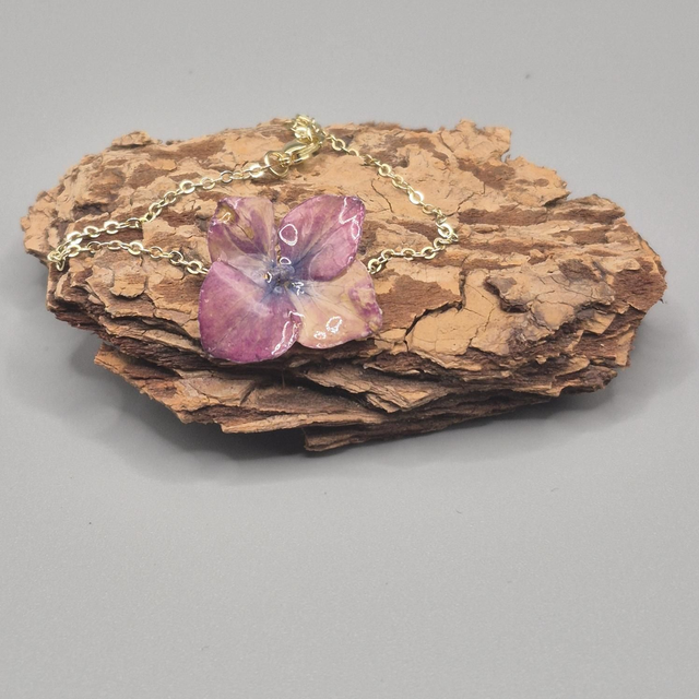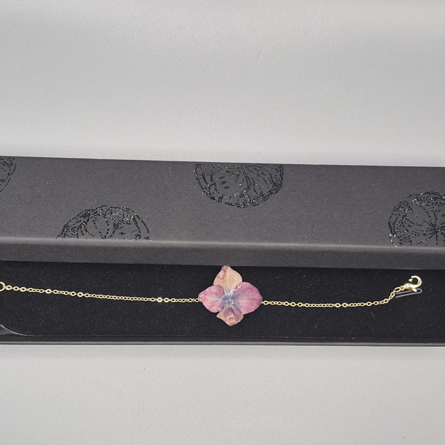 Laissez la nature s’exprimer avec poésie à votre poignet grâce à ce bracelet délicat, renfermant une véritable fleur d’hortensia dans une résine brillante qui capte la lumière.