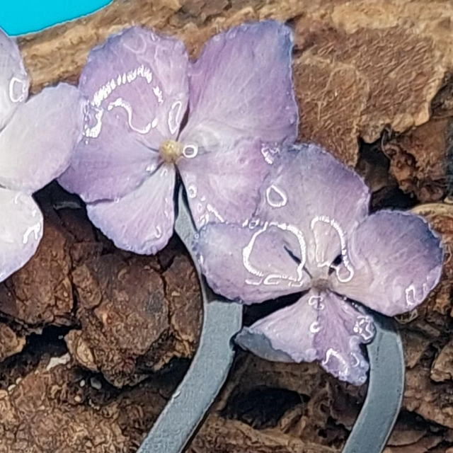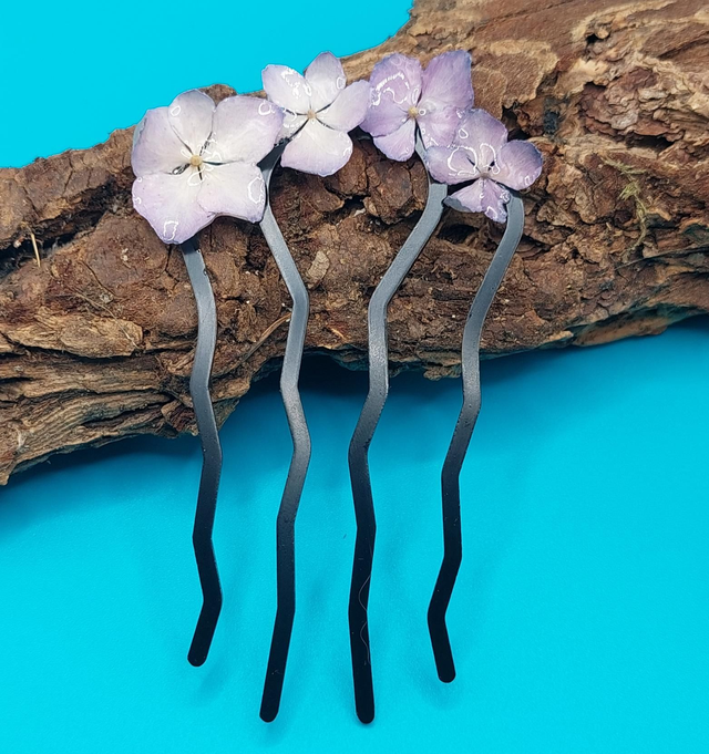 Offrez à vos cheveux un bouquet de nature avec ce peigne délicat orné de plusieurs petites fleurs d’hortensia, soigneusement séchées et encapsulées dans une résine brillante. Un accessoire léger et élégant, qui apporte une touche florale subtile à vos coiffures.
