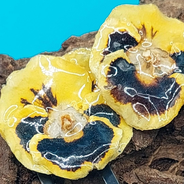 Chaque fleur est soigneusement figée dans une résine brillante, révélant leurs détails délicats.
